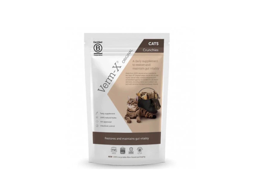 Přírodní pamlsek pro podporu „bezchemického“ odčervení koček. Bylinná směs pomáhá vytvářet ve střevech prostředí nevhodné pro parazity – chutně, šetrně a bez zbytečné chemie.
