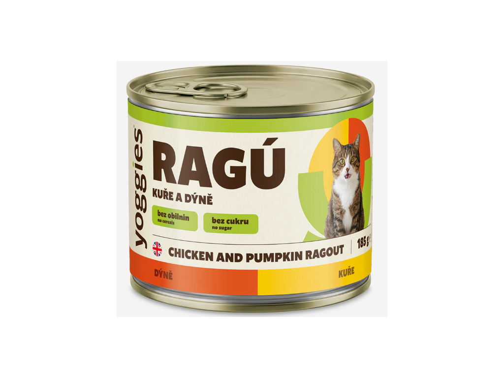 Lehké a šťavnaté ragú s kuřetem a dýní, které potěší i citlivější kočičí bříško. Poctivé maso, jemná omáčka a přirozené složení bez chemie a obilovin – ideální pro každodenní krmení i podporu hydratace.