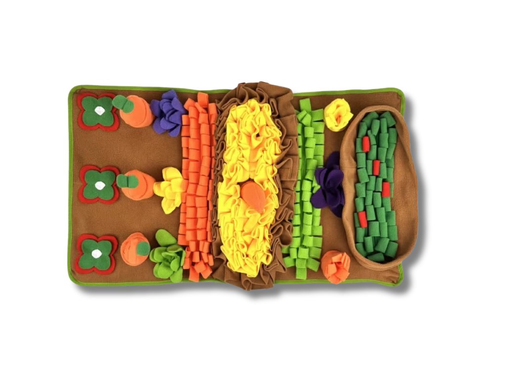 Krásný čmuchací kobereček na dlouhé čmuchání psích kokin. Do koberečku lze schovat mnoho dobrůtek, které bude s radostí Váš pejsek vyčmuchávat. Pejsek unaví svou hlavu a poté spokojeně usne :D. Tento čmuchací kobereček se dá srolovat a připnout pomocí sucháčů nebo pověsit.
