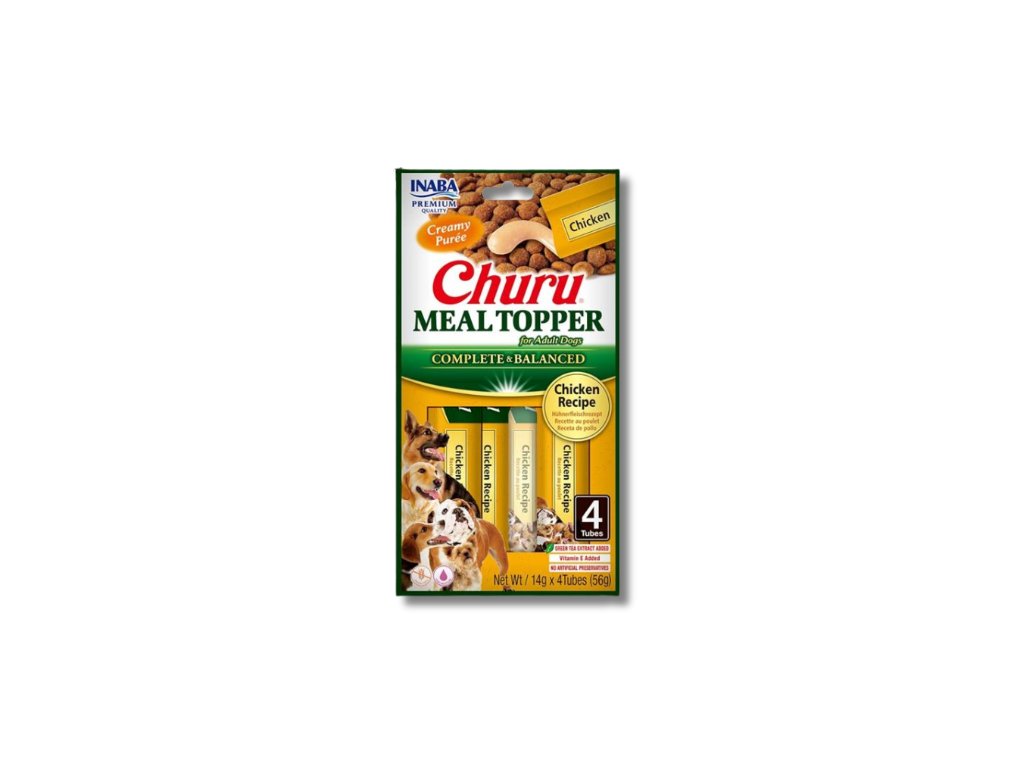 Zpestřete svému psovi suché krmivo lahodnou krémovou polevou s kuřetem. Jemné pyré Churu Meal Topper je možné používat také jako kompletní a vyvážené krmivo nebo lízací pamlsek.