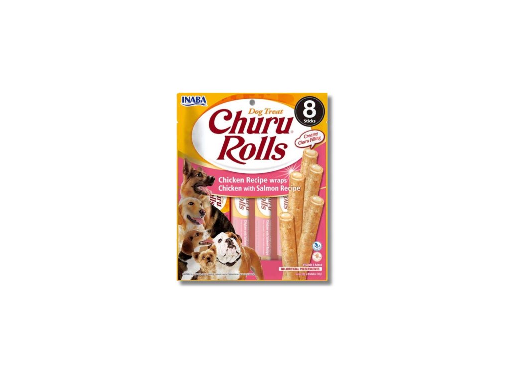 Poloměkké kuřecí tyčinky plněné masovým pyré s divokým mořským tuňákem a lososem jsou šťavnaté, měkké a extra lahodné masové pamlsky bez obilovin pro psy.