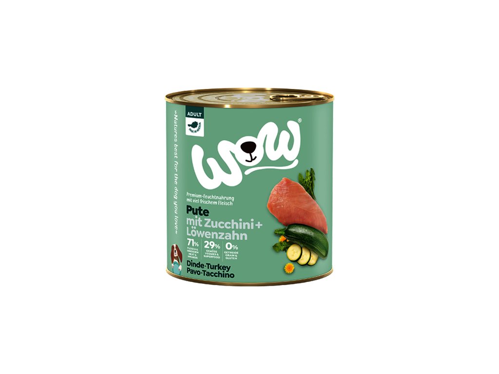 WOW Krocan s cuketou je kompletní mokré krmivo pro dospělé psy všech plemen se 71% obsahem masa a vnitřností od předního rakouského výrobce. Maso je doplněno zeleninou, bylinkami z Alp a vysoce kvalitním lněným olejem. Konzervy jsou ručně plněné v rodinné rakouské firmě z místních, většinou alpských, surovin ze zdravé přírody.